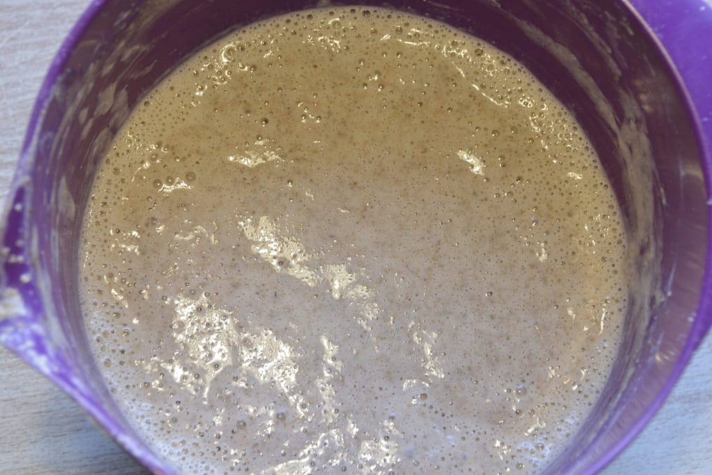 Bland 100 g vand, 30 g rugmel og 35 g hvedemel godt sammen.